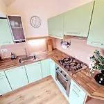 Medzi ďalšími zariadeniami v ubytovaní sú k dispozícii chladnička, rúra a sklo pre samostatné stravovanie. Pre pohodlie hosťom tento apartmán ponúka aj zariadenie na prípravu kávy/čaju. Široká škála zdravých jedál sa nachádza v reštaurácii Vega Heaven, ktorá je len 100 metrov od tohto ubytovania. Autobusová zastávka Námestie osloboditeľov je len 5 minút chôdze od apartmánu.